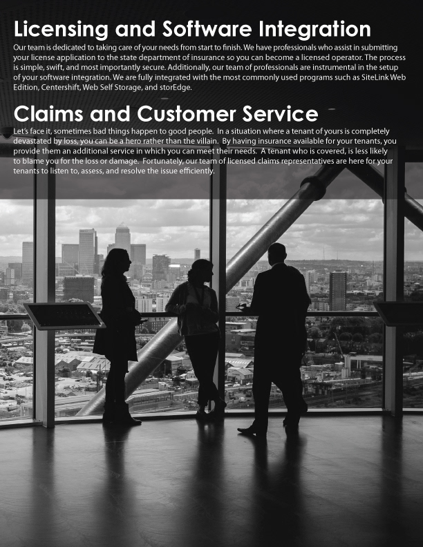 Investor sales pitch document for SBOA Tenant Insurance. Photos edited in Photoshop. Design and final document done in Illustrator.